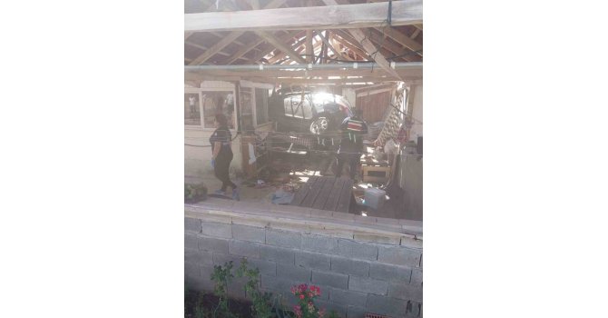 Antalya'nın Korkuteli ilçesinde kontrolden çıkan otomobilin eve girmesi sonucu, kahvaltı yapan ev sahibi ve otomobil sürücüsü yaralandı.