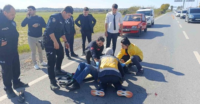 Antalya'da motosiklet ile otomobilin çarpışması sonucu meydana gelen trafik kazasında çarpışmanın etkisiyle yaklaşık 50 metre sürüklenen motosiklet sürücüsü yaralandı.
