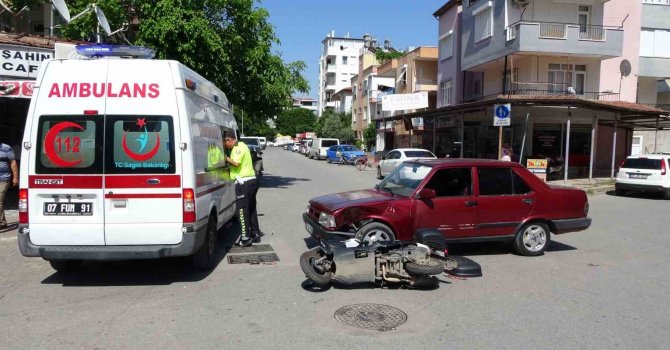 Antalya'nın Manavgat ilçesinde otomobil ile motosikletin çarpışması sonucu meydana gelen kazada motosiklet sürücüsü yaralandı.