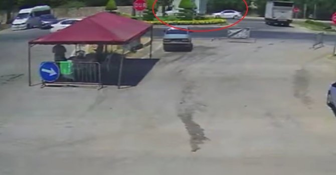 Öte yandan kaza anı güvenlik kamerasına saniye saniye yansıdı. Görüntülerde döner kavşaktan çıkan kamyonete bir otomobilin arkadan çarptığı anlar ve ardından kamyonetin çarpmanın şiddetiyle devrilmesi yer aldı. Görüntülerin devamında ise kaza sesiyle çevredekiler olay yerine yardım için gittiği anlar görüldü.