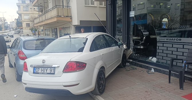 Antalya'da kontrolden çıkan otomobil, cadde üzerindeki erkek kuaförü dükkanına daldı. Büyük paniğin yaşandığı kazada tıraş yapan kuaför ve kalfa patlayan vitrin camlarından kaçarken, o sırada koltukta oturan müşteri ise olduğu yerde donakaldı. Bir süre sonra koltuktan kalkan müşterinin yaptığı ilk iş olayın fotoğrafını çekmek oldu.