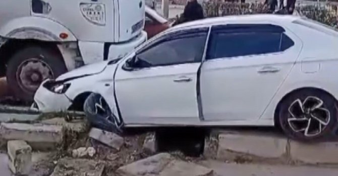 Mersin'de refüje çarpıp karşı şeride geçen araçta bulunan 2 kişi yaralandı, o anlar güvenlik kamerasına yansıdı.