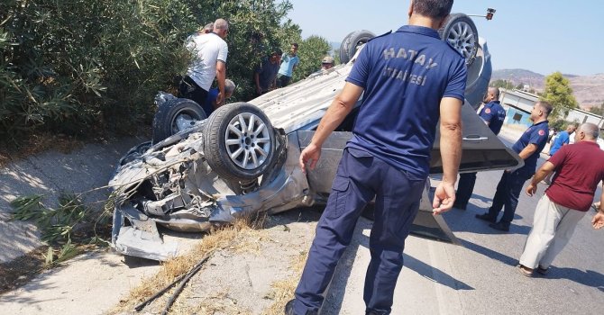 Hatay'da takla atan otomobildeki 3 kişi yaralandı.
