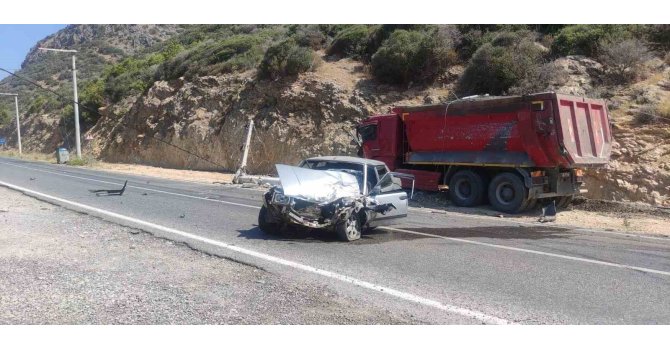 Antalya'nın Gazipaşa ilçesinde hafriyat kamyonuyla çarpışan otomobil hurdaya dönerken, kazada kontrolden çıkan kamyonun çarptığı beton elektrik direği devrildi. Kazada şans eseri ölen ya da yaralanan olmadı.