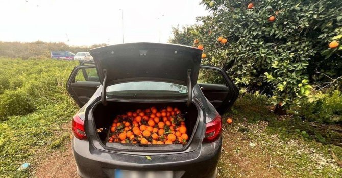 Alınan bilgiye göre, İl Jandarma Komutanlığı ekipleri merkez Akdeniz ilçesinde bir narenciye bahçesine otomobille giren şüpheli olduğu ihbarını alarak harekete geçti. Başkasına ait narenciye bahçesini çembere alan ekipler, şüpheli Ş.D.'yi otomobiline doldurduğu portakallarla suç üstü yakaladı. Şüpheliye ait otomobilin arka koltuğu ve bagajından yaklaşık 500 kilogram portakal çıktı.