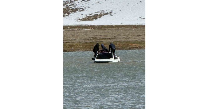 Kahramanmaraş'ta Ahır Dağı eteklerinde bulunan Karagöl'e araçlarıyla giren 3 kişi, gölde mahsur kaldı.