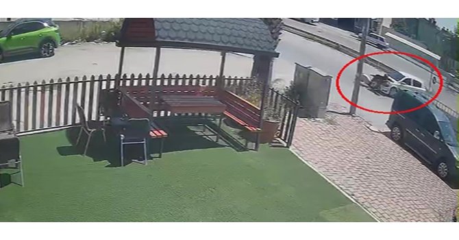 Antalya'nın Kepez ilçesinde motosiklet ile otomobil çarpıştı. Kaza anı bir işyerinin güvenlik kamerasın saniye saniye yansıdı
