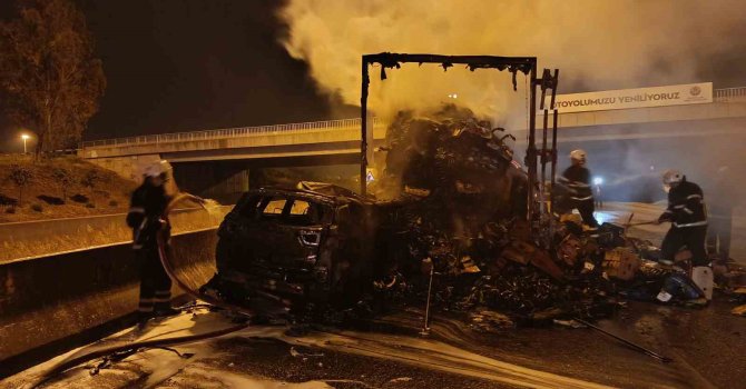 Kısa sürede alev topuna dönen cip kullanılamaz hale geldi. Kazada tırın dorsesi de yanarken, olay yerine çağrılan itfaiye ekipleri yangına müdahale ederek alevleri kontrol altına aldı.