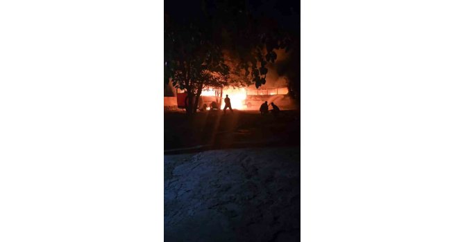 Hatay'da park halindeyken alevlere teslim olan 2 midibüs kullanılmaz hale geldi.