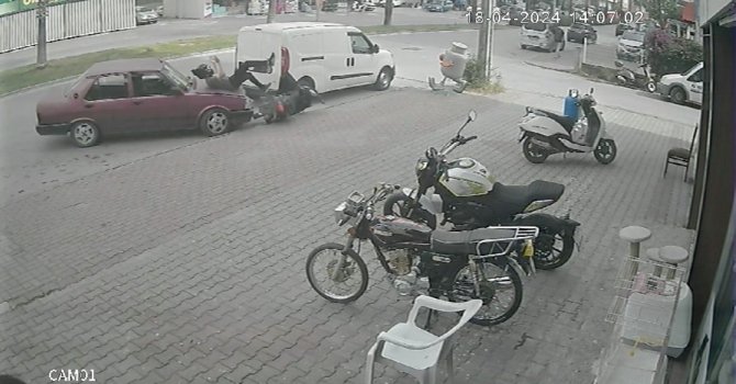 Güvenlik kamerasına saniye saniyesine yansıyan kazada motorlu bisikletin üzerinde oturan Ramazan Aydın yaralandı. Aydın, 112 sağlık ekibinin olay yerindeki müdahalesinin ardından ambulansla hastaneye kaldırıldı.