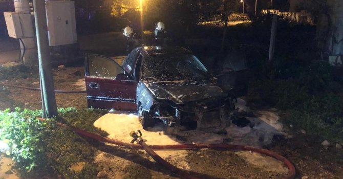 Antalya'da bir evin önünde park halinde olan otomobil, yanarak kullanılamaz hale geldi. Aracın aynı anda ön ve arka kısımlarının alev alması nedeniyle kundaklama iddiasına yönelik çalışma başlatıldı.