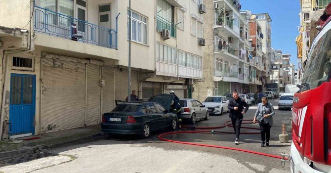 Antalya'nın Manavgat ilçesinde park halindeki otomobilin motor bölümünde çıkan yangın, vatandaşların ve itfaiye ekiplerinin müdahalesi sonucu söndürüldü. Aracın yanma anı güvenlik kamerasına yansıdı.