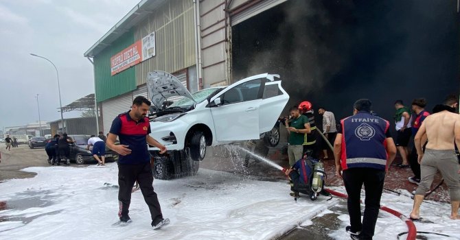 Yangın, Adnan Menderes Mahallesi küçük sanayi sitesi içerisinde meydana geldi. Edinilen bilgiye göre, PVC işiyle uğraşan Veysel Güllü'ye ait elektrikli otomobilden işyeri içerisinde park halindeyken birden dumanlar yükseldi. Dumanı fark eden Güllü ve işyeri çalışanları durumu itfaiye bildirdi. İtfaiyenin gelmesiyle müdahale edilen araç çevredeki vatandaşların yarımıyla halatlarla işyeri dışına çıkarıldı. Bir anda işyerini kaplayan dumanlar arasında otomobili dışarı çıkaran vatandaşlar muhtemel bir facianın önüne geçti. Yanan otomobil forklift üzerinde müdahale eden itfaiye ekipleri yangını söndürmek için saatlerce mücadele verdi.