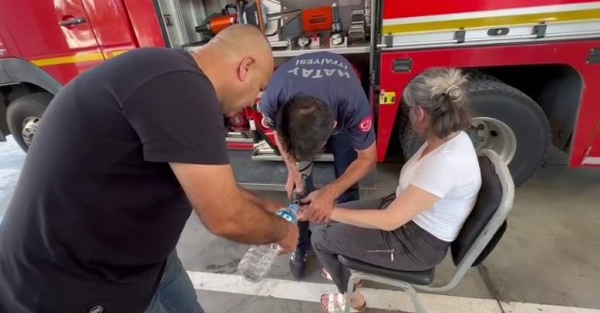 Hatay'da kadının parmağına sıkışan yüzük itfaiye ekipleri tarafından spiralle kesilerek çıkarıldı.