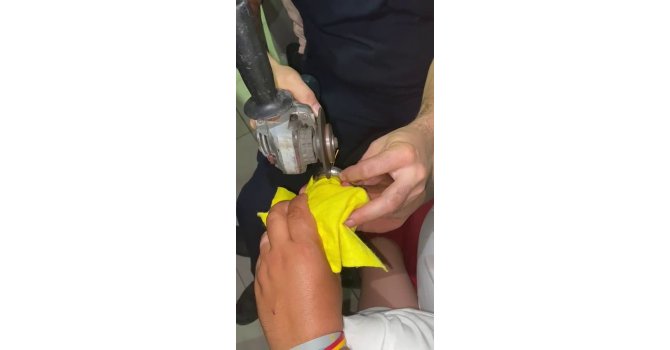 Hatay'da çocuğun parmağına sıkışan musluk rozeti itfaiye ekipleri tarafından kesilerek çıkarıldı.