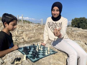 Antalya Gençlik Spor Müdürlüğü ve Satranç İl Temsilciliği işbirliği çerçevesinde Aksu'da öğrenciler, Perge Antik Kenti'nde düzenlenen satranç şenliğinde bir araya geldi.