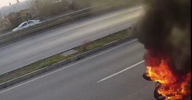 Olay anı, yol kenarındaki işyerinin güvenlik kameralarına yansıdı. Görüntülerde, motosikletle gelen bir kişinin, motosikleti yol kenarına bırakıp gittiği, 1-2 dakika sonra geri dönerek plakasını söküp motosikleti yaktıktan sonra uzaklaştığı görüldü. Motosikletten alevlerin yükseldiğini gören işyeri çalışanları yangın tüpüyle müdahalede bulunsa da motosikletin tamamen yanmasını önleyemedi.