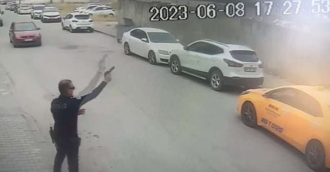 Öte yandan, polis ekiplerinin zanlıyı etkisiz hale getirerek araçtan indirmesi bir iş yerinin güvenlik kamerasınca kaydedildi.