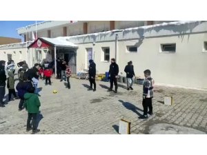 Erzincan Emniyet Müdürlüğünde görevli polisler deprem afeti yaşayan çocuklara bir nebze moral kazandırabilmek için onlarla top oynadı.
