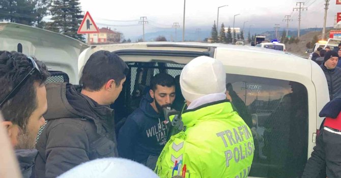 Ahmet Y., gerekli işlemler için polis merkezine götürülürken, kullanılamaz hale gelen araç çekici yardımıyla otoparka çekildi.