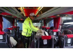 Hatay Emniyet Müdürlüğü'ne bağlı Trafik Denetleme Şubesi ekipleri, şehrin güvenliğini ve huzurunu sağlamak amacıyla denetimleri aralıksız sürüyor. Trafik ekipleri, Antakya ilçe merkezindeki Otobüs Terminal'inde Ramazan Bayramı öncesinde denetim gerçekleştirdi. Ekiplerin yaptığı denetimlerde terminalde bekleyen ve otobüste yola çıkacak yolculara trafik kurallarını ve emniyet kemerinin önemini anlatacak bilgilendirici broşürler dağıtıldı. Trafik ekiplerin hem yazılı hem de sözlü olarak yolculara uyarılarda bulunurken otobüs şoförlerine alkol denetimi gerçekleştirdi. Trafik ekiplerin gerçekleştirdiği denetimlerden yolcular, memnun kaldıklarını belirttiler.