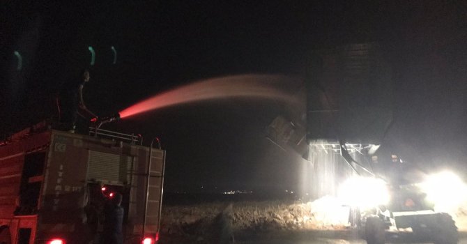 Hatay'da pamuk toplama makinesinde çıkan yangını itfaiye ekipleri söndürdü.