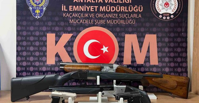 Antalya Emniyet Müdürlüğü Kaçakçılık ve Organize Suçlarla Mücadele Şube Müdürlüğü tarafından il genelinde yapılan son 1 haftalık operasyonlar neticesinde, "Suç İşlemek Amacıyla Örgüt Kurmak" suçundan 4 şüpheliye adli işlem yapılırken, yapılan aramalarda 2 tabanca, 3 av tüfeği ve 51 tabanca fişeği ele geçirildi. "Rüşvet" suçundan ise 2 şahıs hakkında adli işlem başlatılırken, "5607 Sayılı Kanuna Muhalefet" suçundan 9 şüpheliye işlem yapıldı.