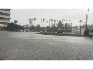 Adana'da saban başlayan yağmur yolları göle çevirirken, işe gitmek için yola çıkan vatandaşlar zor anlar yaşadı.