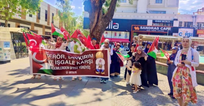 Muratpaşa Camii önünde başlayan ve Kapalıyol boyunca ellerinde Türkiye ve Filistin bayrakları ile sessiz yürüyüş düzenleyen hekim ve sağlık çalışanları basın açıklaması yaptı. Sessiz Hekimler Platformu adına basın açıklamasını okuyan Dr. Kevser Erdoğan, "Bizler önlüklerimizin zaman geçtikçe sararmasını beklerken, kanla kıpkırmızı olan hekimleriz. Hastalarımızı iyi etmek için gece gündüz demeden çalışırken artık bizler de ölüyoruz. Her bombada, her saldırıda birer birer ölüyoruz. Yattığımız yerler yatak değil de diken olduğundan beridir buradayız. Tamı tamına 287 gündür kasap bir topluluğun yaptığı delice vahşeti iliklerimizde yaşıyoruz" dedi.