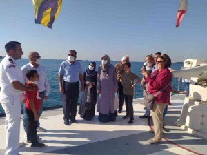 Sahil güvenlik botunu ziyaret eden ilçe sakinlerine komutanlık personelleri eşlik ettiler.