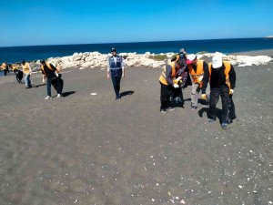 Hatay'ın Samandağ ilçesi sahilinde geçen yıl Suriye kaynaklı petrol sızıntısının neden olduğu kirliliğinin tekrar kalıntılarına rastlanılması üzerine temizlik çalışması yapıldı.