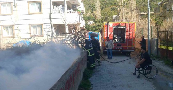 Hatay'ın Samandağ ilçesinde bir evin bahçesinde çıkan yangını itfaiye ekipleri söndürdü.