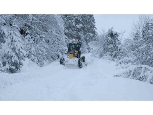 Kapanan yollarda kar temizleme çalışması aralıksız sürüyor.