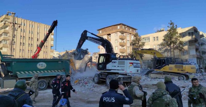 Kahramanmaraş merkezli depremlerin ardından Şanlıurfa'da yıkılan binalarda enkaz kaldırma çalışmaları sürüyor. Enkaz kaldırma çalışmalarının sürdüğü Osman Ağan Apartmanı'nda ekipler, haber alamadığı 7 kişinin bulunması için arama çalışmalarına devam ediyor.
