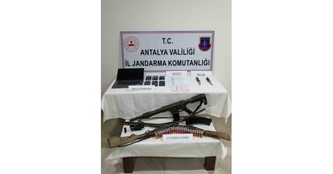 Manavgat ilçesinde mağdur B.B. isimli şahsı; İ.K., Z.Ö.U., S.B. ve S.S. isimli şahısların silah tehdidiyle ve şantaj uygulamak suretiyle 600 bin TL değerinde zorla senet imzalattıkları, aynı zamanda şahsı darp ederek hakaret ve tehditte bulundukları olayı ile ilgili olarak şüpheli şahısların ikamet adreslerinde arama geçekleştirildi. Yapılan aramada; 3 adet yivsiz av tüfeği, 2 adet 600 bin TL değerinde senet, 5 adet boş senet, 2 adet bıçak, 1 adet silah dürbünü ve 300 adet av tüfeği fişeği ele geçirildi. Olayla ilgili şüpheli 4 kişi ise tutuklandı.