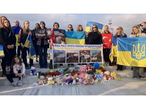 Ukrayna-Rusya savaşında bir yılın geride kalması nedeniyle Ukraynalı vatandaşların İzmir'de düzenlediği törende, savaşta ölen çocuklar oyuncaklarla anıldı.