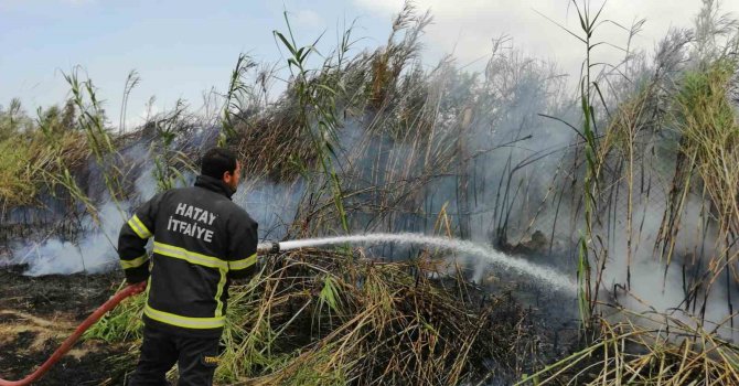 Hatay'ın Samandağ ilçesinde sazlık alanda çıkan yangın söndürüldü.