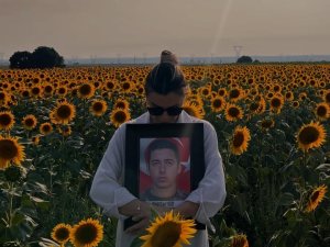 Tunceli'de kazada şehit olan polis memuru Yiğit Can Yiğit'in eşi İlknur Yiğit, onunla birlikte fotoğraf çektirdiği ayçiçek tarlasına gidip kucağında şehit eşinin fotoğrafı ile çekim yapması duygulandırdı.