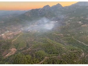 Günün ağarmasıyla birlikte bölgedeki yangını tamamen kontrol altına alma çalışmaları da hızlandı. 43 arazöz, 16 ilk müdahale, 10 su ikmal aracı, 4 dozer, 22 hizmet vasıtası, 2 helikopter ve çok sayıda yangın işçisi ile müdahalenin sürdüğü yangın alanında, yanan bölgeler havadan görüntülendi.