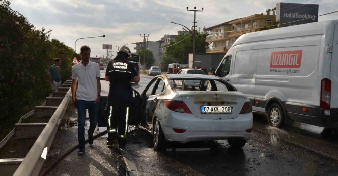 Olay, saat 07.30 sıralarında Serik'e bağlı Cumalı kavşağı yakınlarında meydana geldi. Edinilen bilgiye göre, Antalya'dan Serik yönüne doğru ilerleyen, Azerbaycan uyruklu Maksim Aleksandroviç'in kullandığı 07 AKK 208 plakalı kiralama şirketine ait Hyundai marka otomobil, henüz belirlenemeyen nedenden alev aldı. Aracın motor kısmından çıkan dumanları fark eden sürücü, aracı yol ortasında durdurup 112 Acil Çağrı Merkezi'nden yardım istedi. Olay yerine kısa sürede itfaiye ve polis ekipleri sevk edildi. İtfaiye ekiplerinin müdahalesiyle yangın kontrol altına alınarak söndürüldü. Tamamen yanan araç hurdaya döndü. Yangın nedeniyle tek şeritten sağlanan trafik yangının söndürülmesinin ardından tekrar normale döndü. Olayla ilgili inceleme başlatıldı.