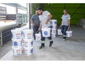 Belediyenin ihtiyacı olan boyayı kurduğu atölyede üreten Seyhan Belediyesi, ürettiği boyayı kamu kurumlarıyla paylaşıyor.