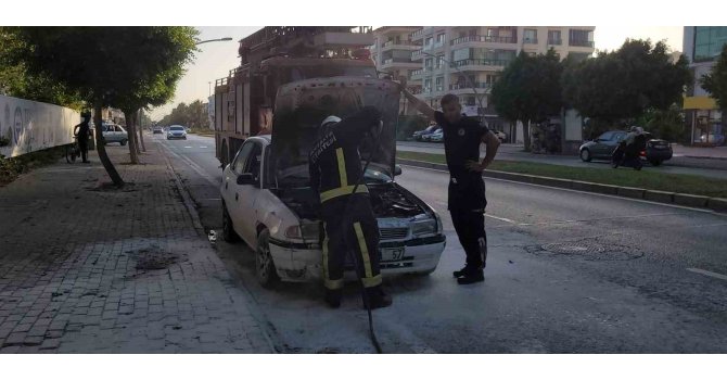 Antalya'nın Gazipaşa ilçesinde seyir halinde olan otomobilin motor kısmında yangın çıktı. Yangına ilk müdahaleyi ise yoldan geçen polis ekipleri yaptı.