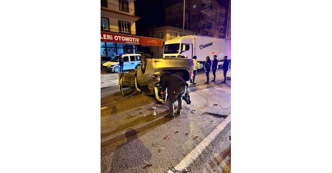 Antalya'nın Serik ilçesinde seyir halindeki otomobil, sürücüsünün önündeki araca çarpmamak için direksiyonu kırmasıyla yoldan çıkarak tel çitlere çarparak devrildi. Otomobildeki 2 kişinin yaralandığı kaza anı bir iş yerinin güvenlik kamerası tarafından kaydedildi.