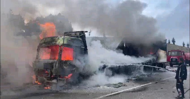 Antalya'nın Korkuteli ilçesinden seyir halinde alev alan tır kullanılamaz hale geldi. Olayda can kaybı ya da yaralanan olmadı.