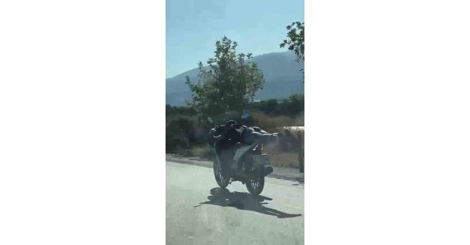 Gaziantep - Hatay karayolu Kırıkhan ilçesi mevkiinde akan trafikte motosiklet üzerinde akrobatik hareketler yapan şahıs cep telefonuyla görüntülendi. Canını hiçe saymadan motosikletin üzerine yatarak yolculuk yapan sürücü, yürekleri ağza getirdi. Anbean cep telefonu kamerasına yansıyan görüntülerde şahsın akan trafikte motosikletin üzerine yatarak aracı kullandığı görüldü.