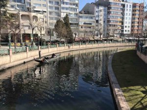 Eskişehir'de öğlen saatlerine doğru iyice hissedilen sıcak havayı fırsat bilen vatandaşlar Porsuk Çayı'nda gondol keyfi yaptı.