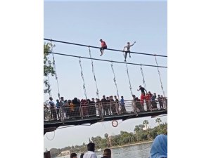 Adana'da hava sıcaklığının artmasıyla birlikte gençlerin serinlemek için metrelerce yükseklikteki köprünün halatlarının üzerinden Seyhan Nehrine atlaması dikkat çekti.