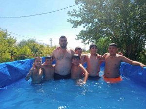 Çocuklar ise havuzdaki buz gibi suda yüzmenin ve eğlencenin tadını çıkardı.