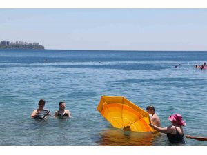 Turizm kenti Antalya'da kavurucu sıcaklıklar etkili olmaya devam ediyor. Hava sıcaklığının 35 dereceye yaklaştığı, nem oranının ise yüzde 14 ölçüldüğü kentte hafta sonu tatilini fırsat bilenlerin merkezi dünyaca ünlü Konyaaltı sahili oldu. Hınca hınç dolan sahilde vatandaşlar bir yandan Akdeniz'in serin sularında yüzerken diğer taraftan da sıcak kumsalın üzerinde şemsiye altında dinlenmenin keyfini sürdü.