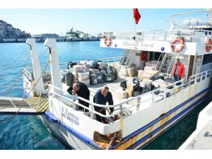 Aydın'ın Kuşadası ilçesine, Yunanistan'ın turistik adası Sisam'dan "Kuşadası Express" isimli feribotu ile Kahramanmaraş merkezli depremlerde zarar görenlere ulaştırılması için temel ihtiyaç malzemeleri getirildi. Kuşadası Limanı'na indirilen yardım malzemeleri, kamyona yüklendikten sonra Kuşadası Kaymakamlığı koordinasyon merkezi tarafından afet bölgesine gönderildi.